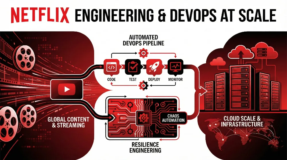 Among modern DevOps Case Studies, Netflix stands out for its focus on resilience and automation at global scale. Netflix is widely regarded as one of the earliest and most influential adopters of DevOps practices at enterprise scale. Its transformation did not begin as a technology experiment, but as a business necessity. When Netflix transitioned from a DVD rental service to a global streaming platform, software availability became inseparable from the customer experience. Unlike traditional enterprises where outages might be absorbed internally, any disruption at Netflix was immediately visible to millions of users worldwide. Reliability, therefore, was no longer a technical metric managed by IT teams; it became a core business imperative tied directly to revenue, brand trust, and customer retention.